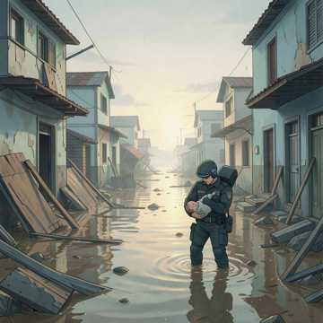 Esse agente não salvou só uma criança. Salvou o futuro de uma mãe que agora chora sem saber se tem casa para voltar. Salvou a esperança de um pai que perdeu tudo, menos o que mais importa. Enquanto a correnteza arrastava móveis, brinquedos e histórias inteiras, aquele homem segurou firme o que nenhuma enchente pode levar: a vida.