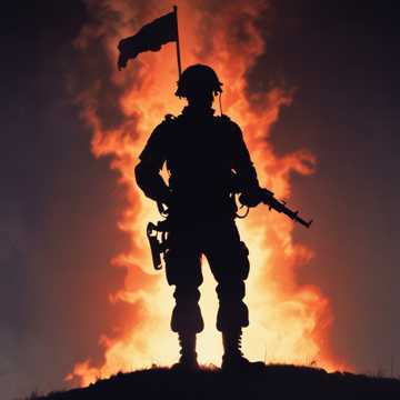 Среди грохота взрывов, в дыме и пламени,