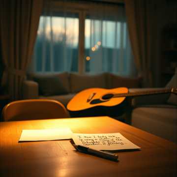 Warm acoustic pop ballad with intimate female vocals, soft fingerpicked guitar and light piano doubles. Verses stay close-mic’d and conversational, subtle room reverb. Chorus blooms with gentle pads, low bass, and stacked harmonies on the hook. Final chorus adds a small lift and wordless “ааа” background line, then strip back to guitar for a tender outro.