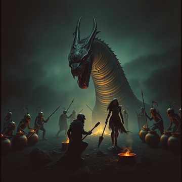 Par Aghaba und Bulba Kahn, mit Oghusan an ihrer Seite, standen auf der Anhöhe und blickten vom Rücken ihrer Pferde weit in die Steppe unter sich das Tiefe Tal; wo in der Nacht funkelte das Erdgruben Behausung Häuser Wohnlager der Menschenfresser Botai Barbaren und schossen ab den ersten Pfeil. Sie hatten an ihre spitzen Steppenkrieger Helme Wangenklappen befestigt die das ganze Gesicht bedeckten; innen gut mit skythischem Yak Filz wattiert, nur die Augen waren frei, um so dem tödlichen Atem der Botai zu entgeh´n. Der Skythen und Oghusen Stammesverbände umritten das Lager in hunderten von gebündelter Kampfverbänden und schossen tausender Pfeile pro Sekunde in entgegengesetzter Richtung reitend bei völliger Dunkelheit durch die Linien Lücken und drangen nun stoßweise in das Lager ein und setzte nun Brandsatz ein und es hagelte nun Brandpfeile von der andren Richtung Seite und so wurden ihnen die Menschenfresser genau vor ihren gespannten Skuthai Bogen getrieben und starben tausendfach in der Pfeile Hagel tödlichem Gruß. Oghusan sprang vom Pferd und das skalpieren und enthäuten begann. Überall an den Feuerstellen lagen noch verkohlte unverzehrte Menschenreste herum und halb gar gekochte Köpfe schwammen in den Kupfertöpfen auf der fettigen, kochenden Menschenfett Kraftbrühe herum. Oghusan hatte schon vier schöne Kriegerköpfe abgetrennt, die er an seinen goldenen Kriegergürtel gehängt, die besonders tapfer gegen ihn gekämpft und hatte auch schon deren Brust und Rückenhaut abgezogen, die mit wunderschönen Schlangenköpfen tätowiert; daß wären wieder vier super edle mit reinem Skythen Gold verzierte Bogen und Pfeil Futteral für ihn geworden. Doch plötzlich völlig unverhofft traf ihn ein mächtiger Keulenschlag am Hinterkopf. Ich bin Par Aghaba die Feder des Adlers und wenn der Skythen Greife Ihre Flügel in der Steppe Höhen schwingen wird bald des Todes Lied erklingen. Par Aghaba und Bulba Kahn Par Aghaba und Bulba Kahn Par Aghaba und Bulba Kahn Par Aghaba und Bulba Kahn. Oghusan traf der mächtige Keulenschlag am Hinterkopf völlig unverhofft und sein wattierter und Wangenklappen komplett Verschluss Bronzehelm flog ihm meterweit vom Kopf und vor ihm stand eine mächtge Kriegerin nur aus Muskeln und Fett bestehend Fettgöttin die von den Botai als Schlangenköpfige Naturmutter Erdgöttin verehrt und mindestens, wahrscheinlich über zwei Meter groß. Aus deren Haut könnt er sich ein ganzes Zelt Jurten, Haus bauen; so dacht er sich als er mit dem Kopf nach unten am Boden lag. Par Aghaba spannte vier dünne aber schwere Knochen Spitz Pfeile, die normalerweise besonders tief eindrangen, in die Sehne und traf die Schlangenkopf Göttin mitten ins Herz; der machte das aber nix und Oghusan entkam gerade noch dem zweiten Schlag der locker zweihundert Kilo schweren Kupferkeule mit Eber Hauern an der Spitz und zog seinen extra scharf geschliffenen Akinakes Dolch und rammt ihn durch deren der Schlangenkopf Göttin riesigen Bauchnabel Bauch samt Arm und Hand hinein und durch; und kam hinten fast schon wieder raus und zog nochmal zurück und trennte die Wirbelsäule an der Hüfte zweimal durch und das Menschfresser Schlangen, Schlangenkopf Göttin Monster Tierwesen zuckte oben und unten in entgegen gesetzter Richtung und lief rum wie ein Huhn ohne Kopf und die Bein liefen ganz komisch stelzend und wollten weder vor noch zurück richtig gehorch´n und dann viel sie tot um; die Schlangengöttin; und die hunderte von Vipern die ihr als Halskette dienten zischten noch giftig und ihre Schlangenhaut und schwarzen toten Schlangen Aug´n funkelten noch giftig und gefährlich. Par Aghaba jagte nochmal in den noch zuckenden, riesigen; mit Muskeln und Fett bepackten, tödlich getroffenen Körper vier Pfeile hinein und dann ward es getan. Ich bin Par Aghaba die Feder des Adlers und wenn der Skythen Greife ihre Flügel in der Steppe Höhen schwingen wird bald des Todes Lied erklingen. Par Aghaba und Bulba Kahn Par Aghaba und Bulba Kahn Par Aghaba und Bulba Kahn Par Aghaba und Bulba Kahn Par Aghaba und Bulba Kahn Par Aghaba und Bulba Kahn Par Aghaba und Bulba Kahn Par Aghaba und Bulba Kahn. Par Aghaba und Bulba Kahn… Par Aghaba und Bulba Kahn Par Aghaba und Bulba Kahn Par Aghaba und Bulba Kahn Par Aghaba und Bulba Kahn. Par Aghaba und Bulba Kahn…