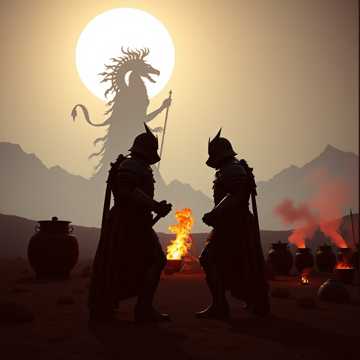 Par Aghaba und Bulba Kahn, mit Oghusan an ihrer Seite, standen auf der Anhöhe und blickten vom Rücken ihrer Pferde weit in die Steppe unter sich das Tiefe Tal; wo in der Nacht funkelte das Erdgruben Behausung Häuser Wohnlager der Menschenfresser Botai Barbaren und schossen ab den ersten Pfeil. Sie hatten an ihre spitzen Steppenkrieger Helme Wangenklappen befestigt die das ganze Gesicht bedeckten; innen gut mit skythischem Yak Filz wattiert, nur die Augen waren frei, um so dem tödlichen Atem der Botai zu entgeh´n. Der Skythen und Oghusen Stammesverbände umritten das Lager in hunderten von gebündelter Kampfverbänden und schossen tausender Pfeile pro Sekunde in entgegengesetzter Richtung reitend bei völliger Dunkelheit durch die Linien Lücken und drangen nun stoßweise in das Lager ein und setzte nun Brandsatz ein und es hagelte nun Brandpfeile von der andren Richtung Seite und so wurden ihnen die Menschenfresser genau vor ihren gespannten Skuthai Bogen getrieben und starben tausendfach in der Pfeile Hagel tödlichem Gruß. Oghusan sprang vom Pferd und das skalpieren und enthäuten begann. Überall an den Feuerstellen lagen noch verkohlte unverzehrte Menschenreste herum und halb gar gekochte Köpfe schwammen in den Kupfertöpfen auf der fettigen, kochenden Menschenfett Kraftbrühe herum. Oghusan hatte schon vier schöne Kriegerköpfe abgetrennt, die er an seinen goldenen Kriegergürtel gehängt, die besonders tapfer gegen ihn gekämpft und hatte auch schon deren Brust und Rückenhaut abgezogen, die mit wunderschönen Schlangenköpfen tätowiert; daß wären wieder vier super edle mit reinem Skythen Gold verzierte Bogen und Pfeil Futteral für ihn geworden. Doch plötzlich völlig unverhofft traf ihn ein mächtiger Keulenschlag am Hinterkopf. Ich bin Par Aghaba die Feder des Adlers und wenn der Skythen Greife Ihre Flügel in der Steppe Höhen schwingen wird bald des Todes Lied erklingen. Par Aghaba und Bulba Kahn Par Aghaba und Bulba Kahn Par Aghaba und Bulba Kahn Par Aghaba und Bulba Kahn. Oghusan traf der mächtige Keulenschlag am Hinterkopf völlig unverhofft und sein wattierter und Wangenklappen komplett Verschluss Bronzehelm flog ihm meterweit vom Kopf und vor ihm stand eine mächtge Kriegerin nur aus Muskeln und Fett bestehend Fettgöttin die von den Botai als Schlangenköpfige Naturmutter Erdgöttin verehrt und mindestens, wahrscheinlich über zwei Meter groß. Aus deren Haut könnt er sich ein ganzes Zelt Jurten, Haus bauen; so dacht er sich als er mit dem Kopf nach unten am Boden lag. Par Aghaba spannte vier dünne aber schwere Knochen Spitz Pfeile, die normalerweise besonders tief eindrangen, in die Sehne und traf die Schlangenkopf Göttin mitten ins Herz; der machte das aber nix und Oghusan entkam gerade noch dem zweiten Schlag der locker zweihundert Kilo schweren Kupferkeule mit Eber Hauern an der Spitz und zog seinen extra scharf geschliffenen Akinakes Dolch und rammt ihn durch deren der Schlangenkopf Göttin riesigen Bauchnabel Bauch samt Arm und Hand hinein und durch; und kam hinten fast schon wieder raus und zog nochmal zurück und trennte die Wirbelsäule an der Hüfte zweimal durch und das Menschfresser Schlangen, Schlangenkopf Göttin Monster Tierwesen zuckte oben und unten in entgegen gesetzter Richtung und lief rum wie ein Huhn ohne Kopf und die Bein liefen ganz komisch stelzend und wollten weder vor noch zurück richtig gehorch´n und dann viel sie tot um; die Schlangengöttin; und die hunderte von Vipern die ihr als Halskette dienten zischten noch giftig und ihre Schlangenhaut und schwarzen toten Schlangen Aug´n funkelten noch giftig und gefährlich. Par Aghaba jagte nochmal in den noch zuckenden, riesigen; mit Muskeln und Fett bepackten, tödlich getroffenen Körper vier Pfeile hinein und dann ward es getan. Ich bin Par Aghaba die Feder des Adlers und wenn der Skythen Greife ihre Flügel in der Steppe Höhen schwingen wird bald des Todes Lied erklingen. Par Aghaba und Bulba Kahn Par Aghaba und Bulba Kahn Par Aghaba und Bulba Kahn Par Aghaba und Bulba Kahn Par Aghaba und Bulba Kahn Par Aghaba und Bulba Kahn Par Aghaba und Bulba Kahn Par Aghaba und Bulba Kahn. Par Aghaba und Bulba Kahn… Par Aghaba und Bulba Kahn Par Aghaba und Bulba Kahn Par Aghaba und Bulba Kahn Par Aghaba und Bulba Kahn. Par Aghaba und Bulba Kahn…
