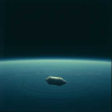 Slow-evolving cinematic dark ambient with subsonic drones, wind-textured noise, and sparse metallic impacts panning across a vast stereo field; minimalist melodic fragments on processed strings and glassy synths emerge and dissolve, while a distant choral pad swells and recedes like failing engines in a dying orbit; long, patient crescendos and decrescendos keep the energy low yet intensely immersive, ideal for high-fidelity listening in a quiet room., low, dark ambient