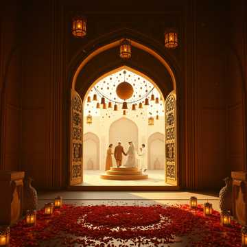 Traditional Yemeni San'ani wedding song; male vocals in a proud, mid-tempo folk groove. Oud, qanbus, and subtle percussion lead the verses; choruses swell with group responses and claps. Melody leans on classic Sanaani turns, with call-and-answer phrases evoking old city rooftops. Energy builds from dignified entrance to joyful, circling dance, ending in a strong, held unison note.