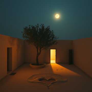 Warm Yemeni love ballad with male vocals, airy oud arpeggios, soft qanbus, and gentle hand percussion. Tempo sits in a relaxed sway; verses feel intimate and close-mic’d, chorus blooms with stacked harmonies and subtle chorus effect on the lead. Light bass underpins the groove, with reverb-kissed backing vocals answering key phrases.