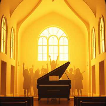 Torches-and-choir school anthem with proud piano chords, warm strings, and a steady marching snare; verses intimate and storytelling, chorus opening huge with layered student choir and male lead vocals, final reprise a cappella tag for a communal, uplifting finish