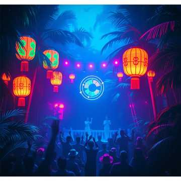 dance, Blend of lush gamelan textures, suling flutes, and Javanese percussion over a chill tropical house groove that blooms into EDM and dangdut koplo drops; mid-tempo bounce, syncopated electronic kicks, shimmering synth pads. Male vocals up front with airy doubles in the chorus; call-and-response backing chants on the hooks and a dynamic lift into the final drop., gamelan, tropical house, dangdut, edm