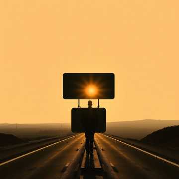 Он также в свете солнца на дороге,