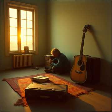 Acoustic Indie Folk, Male emotional soulful raspy vocals, melancholic, guitar fingerpicking, subtle cello, intimate lo-fi, 90 BPM, 432Hz, slow.