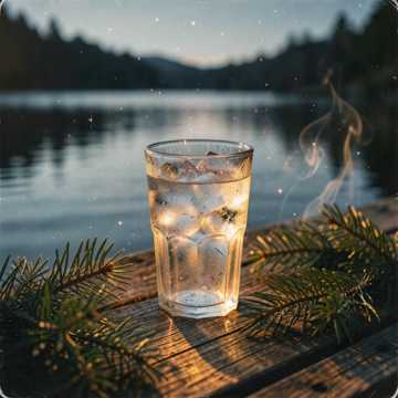 Acoustic Folk Rock, Warm male baritone, soft acoustic guitar, melodic harmonica, relaxed lakeside vibe, sounds of ice clinking in a glass, 95 BPM.