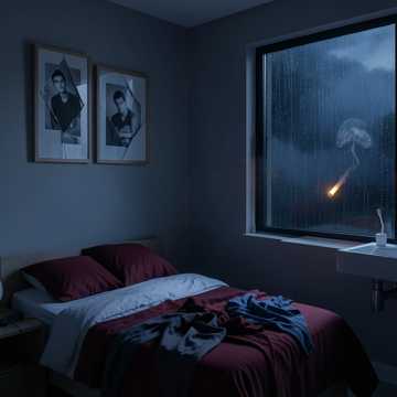 Tua sombra deitada do meu lado O rímel na fronha Drama na madruga Tu dizia “fica Só mais um cigarro” Hoje é só silêncio gritando na minha nuca