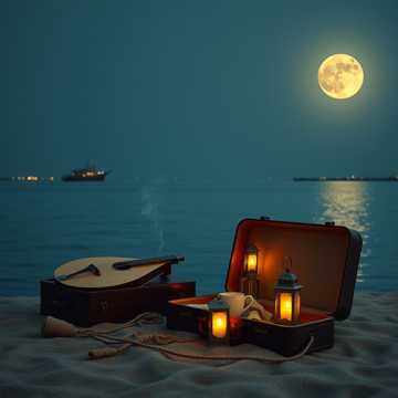 Emotional Arabic ballad with warm oud phrases, brushed percussion, and a swelling string bed that lifts each chorus like a tide; intimate male vocals in the verses, a wider unison feel on the hook, with a gentle qanun sparkle and a final rise that feels like homecoming.