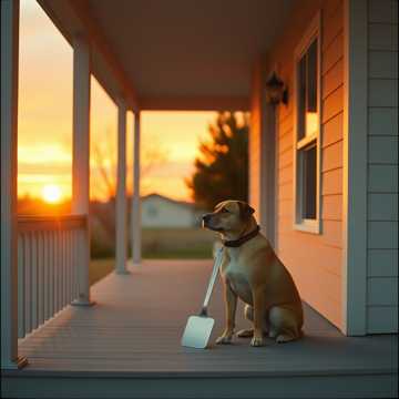 "Keep that edge neat!" he hollers, while the dog shakes his head,