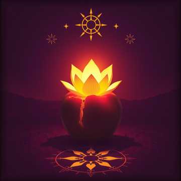 яблока раскрывается из него розовый лотос расцветает у барака грязный пот капает со лба и глаза полны страху