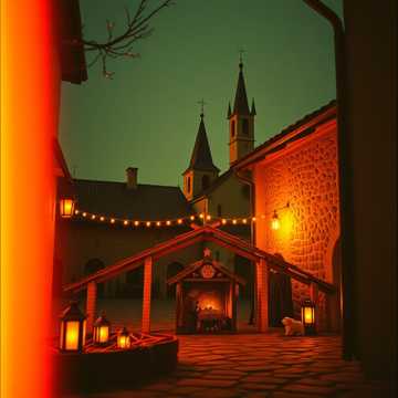 LA CHIESA CON I FEDELI FESTEGGIA IL GRANDE EVENTO , TUTTI BACIANO IL BAMBIN GESÙ CON AMORE E BUONI PROPOSITI .BUON NATALE PER UN MONDO MIGLIORE,