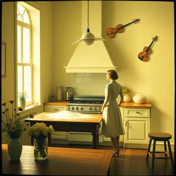 [Verse 2] Okno połyszczy jak tafla rzeki Podłoga śpiewa pod stopą Kwiaty ustawione w jednym szeregu Jakby znały swoją drogę