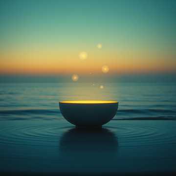 Ethereal meditative drone built around a deeply resonant Tibetan bowl pulsing at 432Hz, layered with slow-evolving binaural pads that gently pan across the stereo field. Soft, close-miked ocean waves roll underneath with subtle Haejoeum-inspired tonal swells, occasional airy overtones, and distant chime glimmers. The arc stays mostly level and calming, with only slight rises in intensity as harmonic layers bloom and then recede, keeping a continuous, high-fidelity healing atmosphere., beats, healing, calming, tibetan, deep, gentle