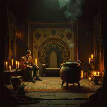 Генерал же рад ответы дать Был я даве у стрельца У Федота-удальца Как узрел его супругу Так и брякнулся с крыльца Третий день ей-ей не вру! Саблю в руки не беру И мечтательность такая Что того гляди помру! А намедни был грешок Чуть не выдумал стишок Доктора перепужались Говорят любовный шок! Царь же щёки раздувая Обошел меня стрелец! А ведь знал что я вдовец! Ну-ко мигом энту кралю Мне доставить во дворец! А коварного стрельца Сей же час стереть с лица Чтобы он не отирался Возле нашего крыльца! Генерал же молвил слово Умыкнуть её не труд Да народец больно крут Как прознают чья затея В порошок тебя сотрут! Дерзкий нынче стал народ Не клади им пальца в рот Мы не жалуем Федота А народ наоборот! Царь тут поднял свою бровь Ты у нас такой дурак По суботам али как? Нешто я должон министру Объяснять такой пустяк? Чтоб худого про царя Не болтал народ зазря Действуй строго по закону То бишь действуй втихаря Ну а я уж тут как тут Награжу тебя за труд Кузнецам дано заданье Орден к завтрему скуют! Скоморох потешник продалжает свой расказ Целый день генерал ум в кулак собирал Всё кумекал в поте лица как избавиться от стрельца Да в башке мысли от напряга скисли Вспомнил на досуге о старой подруге Бабе Яге-костяной ноге Схожу-ко к ней она поумней! А та середь дубравы собирает травы варит всяческие отравы Как увидела генерала все гербарии растеряла Соскучилась в глуши без родственой души! Баба Яга беспокоясь говорит Ты чавой-то сам не свой Не румяный не живой! Али швед под Петербургом Али турок под Москвой? Съешь осиновой коры И взбодришься до поры Чай не химия какая Чай природные дары! В ейном соке генерал Есть полезный минерал От него из генералов Ни один не помирал! Генерал же ей в ответ Полно бабка! Я не хвор! Отойдем-ка за бугор! Расшугай ежей и белок Есть сурьезный разговор Тут у нас один стрелец Шибко грамотный стервец! Вот и вышло мне заданье Извести его вконец! Только как? Башку срубить Дак молва начнет трубить! Не поможешь ли советом Как хитрей его сгубить? Баба Яга вошла в транс Колдуй баба колдуй дед Трое сбоку ваших нет Туз бубновый гроб сосновый Про стрельца мне дай ответ! Коль он так ретив и скор Что с царём вступает в спор Пусть он к завтрему добудет Шитый золотом ковёр Чтоб на ем была видна Как на карте вся страна Ну а коли не добудет То добытчика вина! Генерал заулыбался Ай да бабка! Ай да спец! Вот и хлопотам конец! Хоть вынай тебя из ступы Да министром во дворец! Ноне с немцем нелады Далеко ли до беды А с тобою я готовый Хоть в разведку хоть куды! За добро плачу добром Хошь куницей хошь бобром А не хошь могу монетой Златом али серебром! Баба Яга с насмешкой Полно голубь не греши Убери свои гроши Я ведь энто не для денег Я ведь энто для души Будет новая беда Прямиком спеши сюда Чай и мы в лесу не звери Чай поможем завсегда! Скоморох-потешник далее ведёт свой сказ Зовёт царь стрельца удалого молодца Ишо не дал задание а уж сердит заранее Руками сучит ногами стучит очами вращает в обчем стращает Уж так ему охота извести Федота что ажно прямо в костях ломота! Царь даёт стрельцу указ Раздобудь к утру ковёр Шитый золотом узор! Государственое дело Расшибись а будь добер! Чтоб на ем была видна Как на карте вся страна Потому как мне с балкону Нет обзору ни хрена! Не найдёшь чаво хочу На башку укорочу Передам тебя с расветом Прямо в лапы палачу! Потешник не молчит р