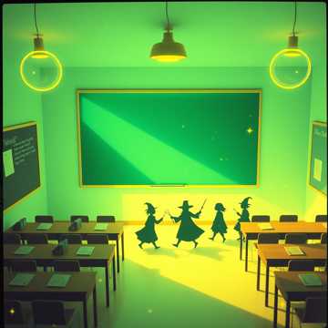 Bouncy cinematic school-of-magic vibe, brisk tempo. Bright orchestral bed with pizzicato strings, woodwinds, and glockenspiel; kids’ choir on a clean lead vocal, claps and stomps driving the rhythm. Verses stay playful and percussive; chorus explodes with group shouts and call-and-response. Mix spotlights the young voices, with little pause breaks for kids to move and shout along.