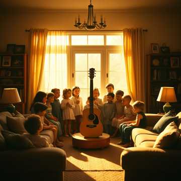 Folk-choir feel with bright acoustic guitars, light tambourine, and simple hand percussion; children’s choir leads with unison melody, adults join in warm harmonies on the refrain. Energetic, dance-like tempo with a short instrumental turnaround between chorus and verse.