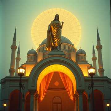 Bei den Tuchhändlern begrüßte sie ein Meer aus Samt und Seide; schwere Ballen kostbarster Stoffe aus Purpur, der Farbe der Sultane und schimmernde zart glänzende Seide die wie flüssiges Gewebe durch die Finger gleitet. Tiefgrüner und tiefdunkel nachtblauer Samt und Brokat verteilen ihr schimmernd, geschecktes, gebrochenes Licht und schlucken in sich hinein das flackernd, spärliche, ölig, rusige Licht der Öllampen, während die goldbestickten Brokate Geschichten aus fernen Ländern erzählen. Sie durchschritten das riesige Eingangstor der Hagia Sofia und ein Lichtermeer aus Gold, Silber, reinster funkelnder Edelsteine und reinem eingefangenen Licht tat sich vor ihnen auf; es fühlte sich an als würden sie den Mittelpunkt; das Zentrum des Universums betreten, so hell leuchtete das Licht, es ward eine Sternen Explosion. Sie standen inmitten der riesigen Himmelshalle und konnten ein Ende nicht entdecken; die Himmels Kuppel reicht samt Gewölbe bis in die Unendlichkeit des Himmels Höhen und ward so von goldenen Licht durchflutet daß man schon meinte das die Augen einem einen Streich spielten. Aber so Langsam hatten sie sich an das göttliche Licht gewöhnt und man konnt erkennen um was es hier geht und wie schön verziert diese Himmels Halle war. Feinste arabische Schriften waren an den Wänden eingraviert wie eintätowiert und leuchteten Goldlack schwarz und grüngolden Gelb und reichten in vielen Kalligrafischen Mustern und Ornamenten bis in des Himmels Höhen und viele Engel und Heilige waren zu bestaunen; viel Pomp und Prunk dachten sich die in Glaubens Dingen bescheidenen und toleranten Steppenkrieger; Rostam kannte das schon aus anderen Nah östlichen Kulturen. Die Dimensionen der Himmels Halle waren Ehrfurcht gebietend; viele Tausende von Gläubigen konnten hier Platz finden, vereint unter dem gigantischen, göttlichen Himmels Baldachin aus Stein und Gold. Der einzigartige Lichteinfall schuf eine spirituelle Aura von erfüllter, gemeinschaftlich erlebter liturgischer himmlischer Erfülltheit und spiritueller Qualität wie sie auf ähnliche weise wohl nur am höchsten Punkt der menschlich Menschenwesen Welt, dem heiligen Berg des Altai; auf der Spitze des Bergs Öteken auf dem Dach der Welt wo sich Himmel und Erde berühren zu finden ist.