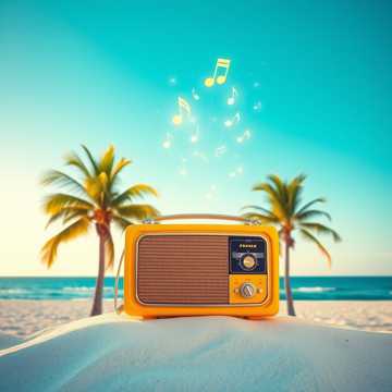 Upbeat Latin pop jingle, bright acoustic guitar and bouncing bass, tight drum groove. Perky mixed male/female vocals trading one-liners, stacked harmonies on the tagline. Short, catchy melody with a big smiling cadence and a final held note for the station name., disco