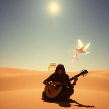 Warm Gulf wedding-band feel; intro on solo oud outlining a minor maqam, then light chordal backing and airy mizmar. Male vocals up close and emotive, with subtle reverb. Second section adds violin answering the vocal phrases and soft piano voicings; rhythm builds from hand percussion into a gentle groove, lifting the hook each repeat.