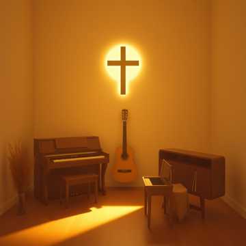 Warm acoustic worship ballad, gentle pad bed and soft piano arpeggios; male or female vocal up front with airy harmonies in the chorus. Verses stay intimate with fingerstyle guitar, chorus blooms with subtle toms, bass swells, and a lifting string layer. Final refrain drops to near a cappella then builds into a tender, reverent outro.