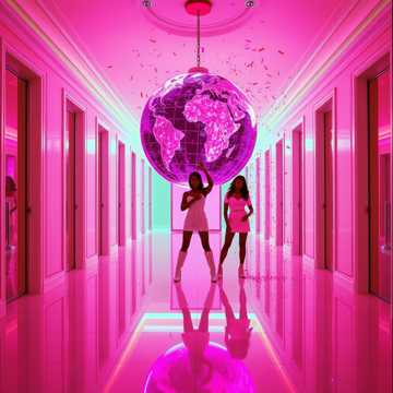 High-energy K-pop style track with glossy synths, tight dance-pop drums, and bright rhythmic guitars. Female vocals stack in bubbly three-part harmonies on the hook; verses are nimble and percussive, pre-chorus lifts with synth risers and claps, chorus explodes with chanty gang vocals and ad-libs. Short middle breakdown with filtered beat and shouted call-and-response before the final chorus hits hardest., girl group, world