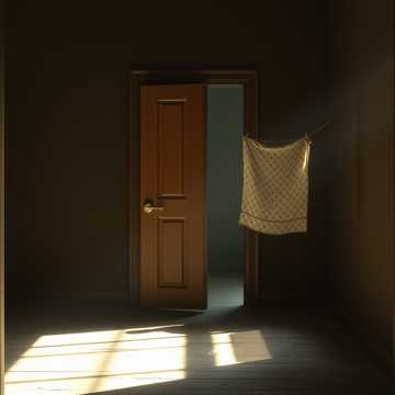 ผ้าถุงลายเก่าๆ แกว่งเบาๆ ตรงลานข้าว
