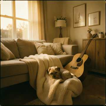 Warm acoustic ballad with male vocals; close-miked nylon guitar and soft shaker. Verses stay intimate and conversational, then chorus blooms with subtle string pad and stacked harmonies. Light piano doubles the vocal hook on the second chorus; gentle swell into a tender, whispered outro.