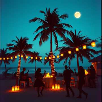Lights are glowing in the palms,