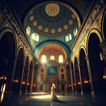 Bei den Tuchhändlern begrüßte sie ein Meer aus Samt und Seide; schwere Ballen kostbarster Stoffe aus Purpur, der Farbe der Sultane und schimmernde zart glänzende Seide die wie flüssiges Gewebe durch die Finger gleitet. Tiefgrüner und tiefdunkel nachtblauer Samt und Brokat verteilen ihr schimmernd, geschecktes, gebrochenes Licht und schlucken in sich hinein das flackernd, spärliche, ölig, rusige Licht der Öllampen, während die goldbestickten Brokate Geschichten aus fernen Ländern erzählen. Sie durchschritten das riesige Eingangstor der Hagia Sofia und ein Lichtermeer aus Gold, Silber, reinster funkelnder Edelsteine und reinem eingefangenen Licht tat sich vor ihnen auf; es fühlte sich an als würden sie den Mittelpunkt; das Zentrum des Universums betreten, so hell leuchtete das Licht, es ward eine Sternen Explosion. Sie standen inmitten der riesigen Himmelshalle und konnten ein Ende nicht entdecken; die Himmels Kuppel reicht samt Gewölbe bis in die Unendlichkeit des Himmels Höhen und ward so von goldenen Licht durchflutet daß man schon meinte das die Augen einem einen Streich spielten. Aber so Langsam hatten sie sich an das göttliche Licht gewöhnt und man konnt erkennen um was es hier geht und wie schön verziert diese Himmels Halle war. Feinste arabische Schriften waren an den Wänden eingraviert wie eintätowiert und leuchteten Goldlack schwarz und grüngolden Gelb und reichten in vielen Kalligrafischen Mustern und Ornamenten bis in des Himmels Höhen und viele Engel und Heilige waren zu bestaunen; viel Pomp und Prunk dachten sich die in Glaubens Dingen bescheidenen und toleranten Steppenkrieger; Rostam kannte das schon aus anderen Nah östlichen Kulturen. Die Dimensionen der Himmels Halle waren Ehrfurcht gebietend; viele Tausende von Gläubigen konnten hier Platz finden, vereint unter dem gigantischen, göttlichen Himmels Baldachin aus Stein und Gold. Der einzigartige Lichteinfall schuf eine spirituelle Aura von erfüllter, gemeinschaftlich erlebter liturgischer himmlischer Erfülltheit und spiritueller Qualität wie sie auf ähnliche weise wohl nur am höchsten Punkt der menschlich Menschenwesen Welt, dem heiligen Berg des Altai; auf der Spitze des Bergs Öteken auf dem Dach der Welt wo sich Himmel und Erde berühren zu finden ist.