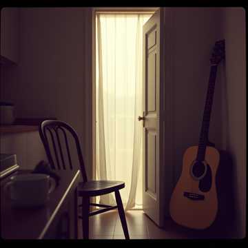 Intimate French chanson with nylon-string guitar and soft piano; male vocals close to the mic, fragile and warm. Verses stay hushed and conversational, subtle strings cushioning the low notes. Chorus opens with wider chords, gentle backing harmonies that lift the emotion. A quiet bridge strips back to almost solo voice before the last chorus blooms, ending on a held, tender note that fades naturally., chanson