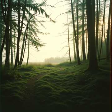 Las oddycha chłodnym świtem,