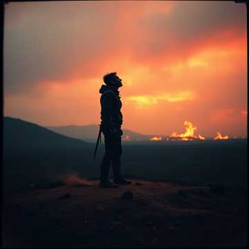 rock, Big epic blues-rock closer with strong baritone vocals; slow-burn intro riff into stadium-sized groove, thick overdriven guitars and organ pads. Verses stay tighter around a swung, head-nod pocket; chorus explodes with stacked gang vocals and wide power chords. Middle section opens for a long, melodic lead guitar break over held chords, then slams back into a final double-chorus and a bold, held vocal tag while guitars blaze to the end., blues, strong, vocal, soaring