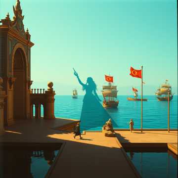 Die Brandung grollte tief und dunkel, die Wellen klatschten krachend gegen den bronzenen Emboloss Rammsporn der karthagischen Kriegsschiff Galeere, Tri´ehre; sie kamen zu einem in´offiziellem Staatsbesuch in geheimer Mission. Par Aghaba, Asena die Wölfin und ihr Erstgeborener Sohn Fa´tich Sultan Mehmet, der noch ein Kind, warteten schon sehnlichst am Kriegshafen von Karthago auf sie. Freudig war das Wiedersehen und sie lagen sich alle herzlichst und wehmütig in den Armen; nach so langer Zeit war die Wiedersehens Freude groß. Der riesige kreisrunde Kriegshafen glich einem Meeresgott ähnlichem allen Feinden trotzendem Kriegsgott Auge und war völlig neu für sie; daß man vom Meer aus die halbe Welt beherrschen konnte. Die immer tödliche, normalerweise ganz in schwarz gepanzerte persönliche Leibgarde von Königin Dido war immer an ihrer Seite und trug zivil und nur leichte Waffen; denn sie waren gekommen unter strengster Geheimhaltung und kamen in geheimer Mission. Sie waren als reiche persisch, iranische Steppenhändler Familie verkleidet und betrachteten sich freudig lachend in dieser hübschen ganz ungewohnten neuen ihrer selbigen Version. Die Wehranlage war Ehrfurcht gebietend; neun Meter starke und zwanzig Meter hohe Mauern; und hoch oben auf den spitzen Zinnen, wo die Winde der Sahara auf die kühle Meeresbrise treffen, hörte man das vor Waffen strotzende, metallische Klirren der Brust und Plattenharnische Patru´li´render Wachen und das ferne Schnauben der über dreitausend mächtgen Kriegselefanten aus deren Stallungen die zu ihrem morgendlichen Kriegstraining aufbrachen. Die Luft ward schwer und drückend heiß; und im Hafen schwebte der scharfe Duft von Teer und Pinienharz mit dem die Schiffsrümpfe abgedichtet und von oben bis unten wurden ganz schwarz. Par Aghaba ward sehr interessiert. Ich bin Par Aghaba die Feder des Adlers und wenn der Skythen Greife ihre Flügel in der Steppe Höhen schwingen wird bald des Todes Lied erklingen. Par Aghaba und Bulba Kahn