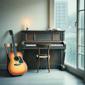 Melancholic acoustic ballad, male vocals; intimate nylon-string guitar and soft piano pads, roomy reverb. Verses stay fragile and conversational, chorus lifts with widened stereo guitars and gentle string swells. Subtle backing vocal harmonies enter on the hook, building emotion then dropping back to a bare, breathy final line.