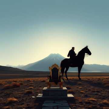 Epic folk-pop with male vocals, dombyra and orchestral strings driving a proud midtempo groove. Verses stay storytelling and intimate; chorus swells with layered gang vocals and big drums. Short bridge drops to almost a capella chant before a final soaring chorus.