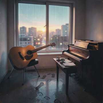 Intimate acoustic ballad with nylon guitar arpeggios, warm piano voicings, and a lyrical bayan weaving countermelodies; male vocals up close and tender. Verses stay sparse and soft, chorus swells with fuller chord voicings and bayan harmonies, then pull back for a delicate bridge before one last soaring hook.