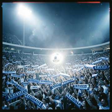 Stadium anthem energy for male vocals, pounding crowd-stomp kick and snare, huge terrace chants. Verses ride on tight toms and claps; chorus explodes with distorted guitars, brass stabs, and massed gang vocals. Short call-and-response bridge with crowd mics wide open, then a final key-lift reprise of the hook.