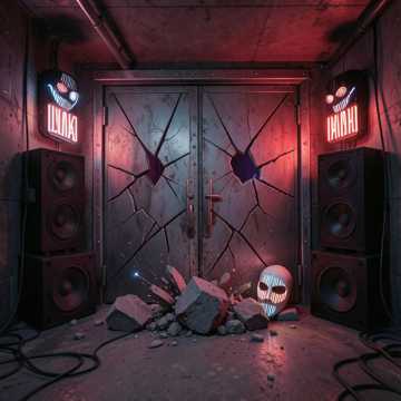 dance, Ultra-aggressive hard rave at 205 BPM, distorted reverse-bass kick driving a Dutch jump rhythm, serrated industrial leads and metallic stabs. Short shouted male vocals drenched in distortion and short slapback, crowd-call style hooks. Drops hit with swept risers, glitchy fills, and brutal low-end; mid-track break leans on filtered synth drones and sirens before slamming back into full-stack mayhem., industrial, hardcore, uptempo, jumpstyle, aggrotech