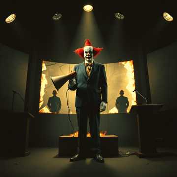 French punk-rock energy, distorted guitars and fast drums driving a sneering, satirical tone; male vocals half-sung, half-spat with gang shouts on the hook and a brief breakdown on the bridge where bass and kick carry a chant before the final explosive chorus, chanson