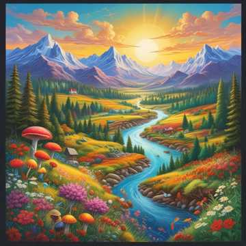 ПолЯны с цветами, журчанье ручья.