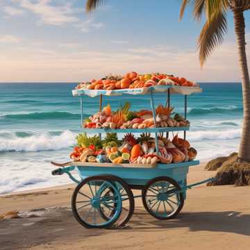 Su carreta es un éxito, ¡gracias a sus mariscos deliciosos!