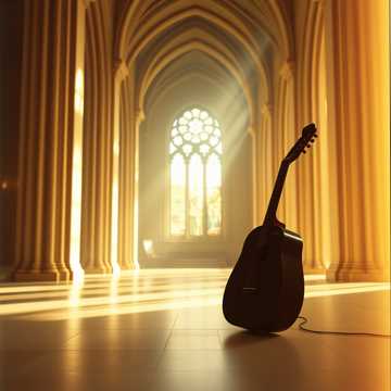 Warm, reverent worship instrumental built around intimate nylon guitar and soft electric textures. Intro starts sparse with solo guitar arpeggios, then gentle pads and subtle bass swell in under the second pass. Mid-song lift adds delayed electric guitar hooks and light toms/shakers for movement, then it returns to a quieter reprise. Long reverb tail and subtle choir pads create a prayerful, open-church atmosphere., worship