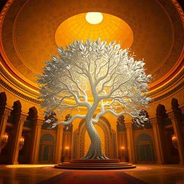 Die riesige runde Innenhalle ward vollständig mit Gold Plättchen bedeckt und in der Mitte der riesigen Kuppelhalle stand ein zwanzig Meter breiter runder Grillrost auf dem Tag und Nacht Fleisch geschmort, gebraten, gegrillt, gekocht, gedörrt, geräuchert wurde; und es zischte, rauchte, schmauchte, fauchte nur so das köstlich duftend Fleisch und Tomaten, Auberginen, Paprika, Peperoni, Chilis, Linsen, Bohnen, Hirse, Reis und Weizen; Hülsenfrüchte und sogar Granatäpfel, Zitrusfrüchte und aller Arten von Nüssen, Manden gebrannt, gegrillt, kandiert, gezuckert, geräuchert, gekocht gaben einen betörenden orientalischen Duft von eintausend und einer Nacht wie auf dem der Welt größten Basar in des Himmels Kuppels Halle ab. Am kreisrunden Eingansrund der riesigen Kuppelhalle stand ein aus reinstem Silber geschlagener, gedrehter, geschmiedeter, heiß gelöteter, feinst ziselierter, modellierter, reich verzierter Silberner Blätter Baum dessen Arme, Äste, Blätter, Zweige, Knospen, Knollen, schlanken Ranken sich bis in des Kuppel Himmels Decke empor rankten, verdrehten, verzahnten, verflochten, umrollten und nicht aufhören wollten zu funkeln und zu gleißen, schimmern und zu leuchten. Und zu guter Letzt auch noch der besten und edelster Trunke in sich trug und aus vier Schlangen Mäulern edelsten Traubenwein, Boal Honigmeht, feinstes vergorenes Stutenmilch Ai`rag und auch noch Terra` sina Reiswein aus der silbern Schlangen Mäulern spieh. Yu`Yi, Ulü Schelunn Khann saß auf seinem golden Thron der gen Norden zeigte und empfing Par Aghaba und seine Gäst. Ich bin Par Aghaba die Feder des Adlers und wenn der Skythen Greife ihre Flügel in der Steppe Höhen schwingen wird bald des Todes Lied erklingen.Par Aghaba und Bulba Kahn Par Aghaba und Bulba Kahn