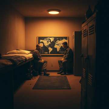 Warm acoustic band feel with male vocals; steady midtempo groove driven by strummed guitar, soft bass, and light drums. Verses stay storytelling and close-mic, almost like talking over a barracks bunk; chorus widens with gang vocals and tambourine for a shout-along feel. Subtle organ pad in the background on the bridge to lift the emotion, then a final, rowdy chorus with ad-libs and claps.