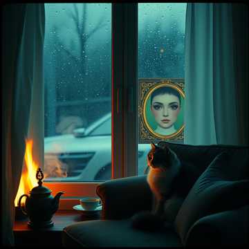 За окном льет дождь,а в доме горит камин,прогони мысли глупые прочь,ведь ты не один.На кушетке любимый кот,а на столе остывший чай,смотрят в зеркало много картин,и ты не скучай.Нарисуй глаза,что б струился в них счастья свет,нарисуй звезду,покровительницу побед.И случится быть может так ,что пойму и не только я,что такое позор и враги и кто такие друзья.