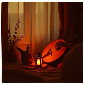 Mid-tempo Arabic pop ballad, gentle percussion and warm oud over soft pads. Male vocals up close and intimate, verses relaxed and conversational; chorus lifts with stacked harmonies and bright strings. Subtle bass glues the groove, tambourine and claps enter in the hook to raise the energy, short instrumental turnaround between sections for breath.