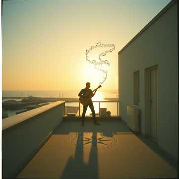 מסתכל על השמיים בוהה בעננים רואה צורות של לב בין הבניינים לוקח את הגיטרה חושב על התווים יש לי את הלחן עכשיו מוסיף את המילים המוזיקה היא הבית שבוא מרגיש בטוח יושב לי בחצר והמייתר מתוח כשאני כותב לך אני בעניינים חי על הגיטרה ופורט על החיים על הצלילים מפליג לי בסערת הרגשות אין לי לא מפרש וזרקתי את המשוט לאן אני הגיע את עצמי אני שואל התשובות הן רק אצלי אני הרב חובל המוזיקה היא הבית שבוא מרגיש בטוח יושב לי בחצר והמייתר מתוח כשאני כותב לך אני בעניינים חי על הגיטרה ופורט על החיים אז תפתחי לי את הנמל רוצה כבר לעגון מפליג בתוך שלווה וים של שיגעון מנווט עם המילים והמנגינה מחפש מקום בטוח לעשות שם עגינה המוזיקה היא הבית שבוא מרגיש בטוח יושב לי בחצר והמייתר מתוח כשאני כותב לך אני בעניינים חי על הגיטרה ופורט על החיים